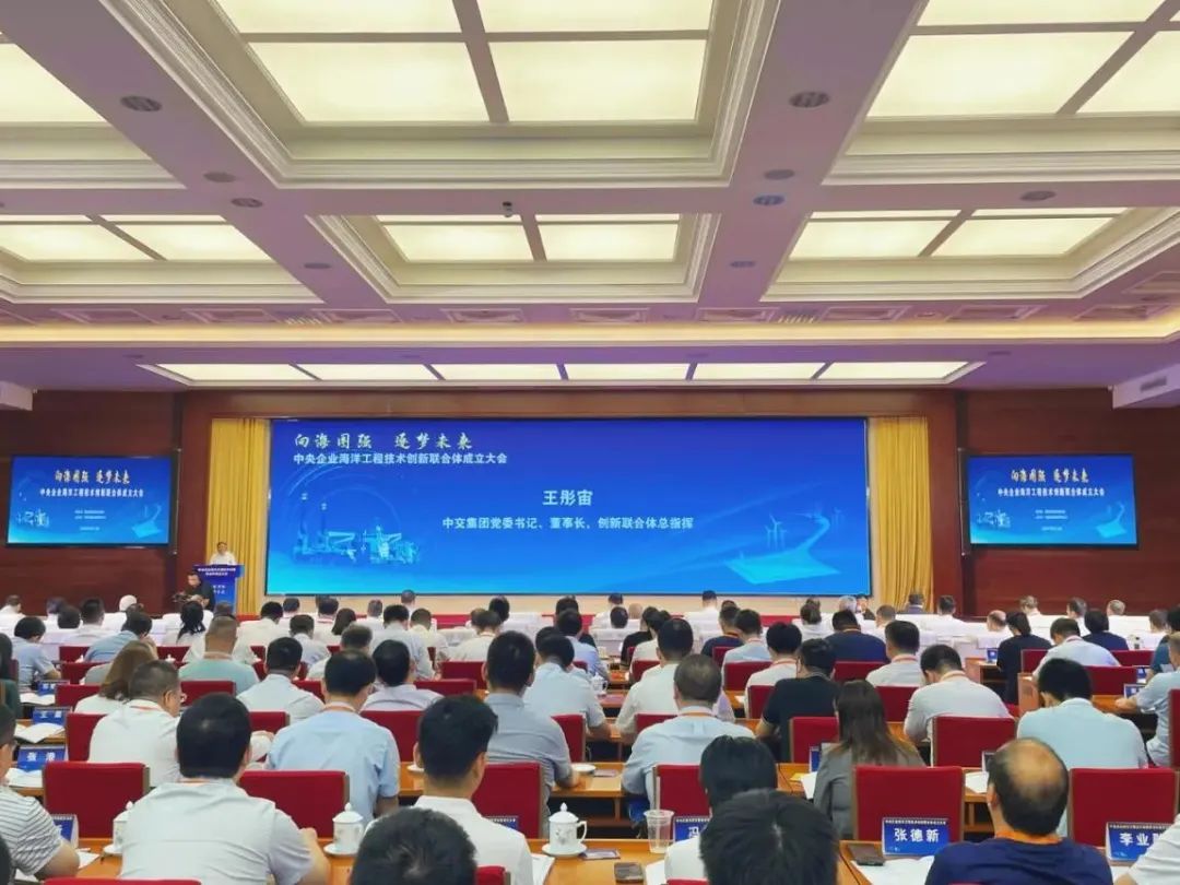 中交集團黨委書記、董事長王彤宙致辭。國務院國資委科技創新局副局長王曉亮,科學技術部科技成果轉化促進司副司長秦浩源,交通運輸部科技司司長徐文強,工業和信息化部裝備工業二司副司長李毅,自然資源部海域海島管理司司長何廣順、科技發展司二級巡視員高學民,交通運輸部科技司司長徐文強,中國科學院張經院士、翦知湣院士,中國工程院丁德文院士、歐進萍院士、丁榮軍院士、張建民院士、張喜剛院士參加會議。