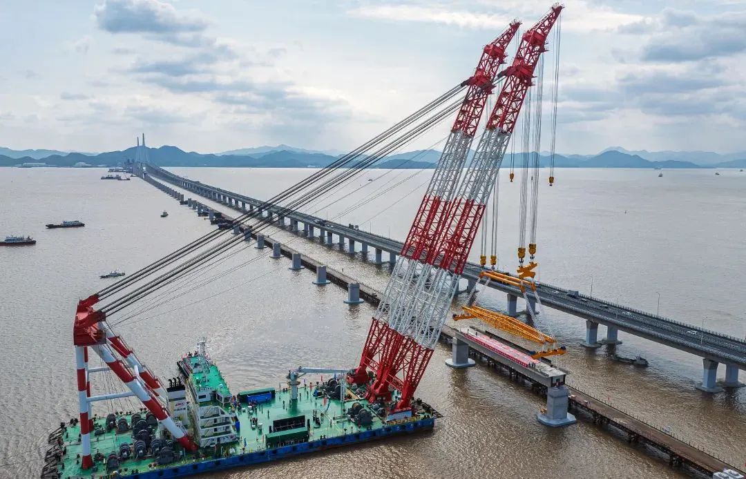 11月5日,隨著現(xiàn)場(chǎng)指揮一聲令下,國(guó)內(nèi)首座市域(郊)鐵路跨海大橋,重1700噸的預(yù)制箱梁穩(wěn)穩(wěn)落至橋墩上,巨力索具箱梁吊具全程保障首榀箱梁成功架設(shè),標(biāo)志著大橋全面進(jìn)入上部結(jié)構(gòu)施工階段。