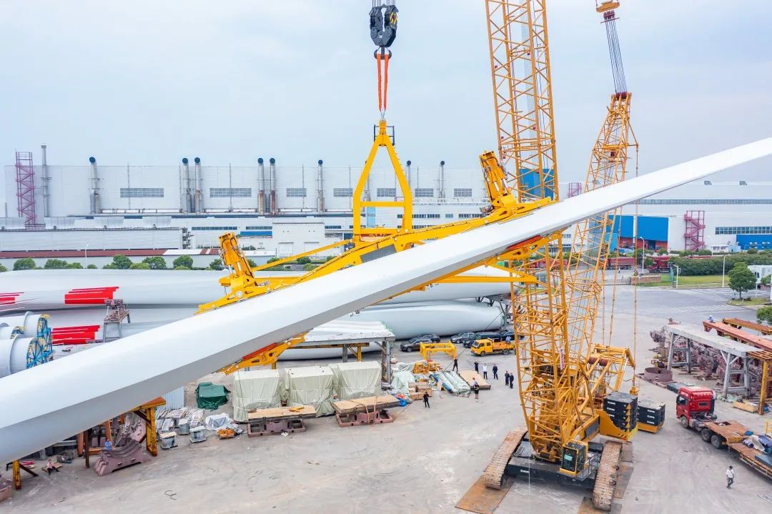 大兆瓦全角度海上單葉片吊具可滿足單只葉片最大承重50噸。同時,將原有的吊裝窗口平均風(fēng)速提升至15m/s,最大陣風(fēng)風(fēng)速可達(dá)18m/s,極大拓寬了風(fēng)機(jī)吊裝窗口期,突破了海上吊裝作業(yè)風(fēng)速邊界限制,是又一款海上風(fēng)電單葉片吊裝“利器”。