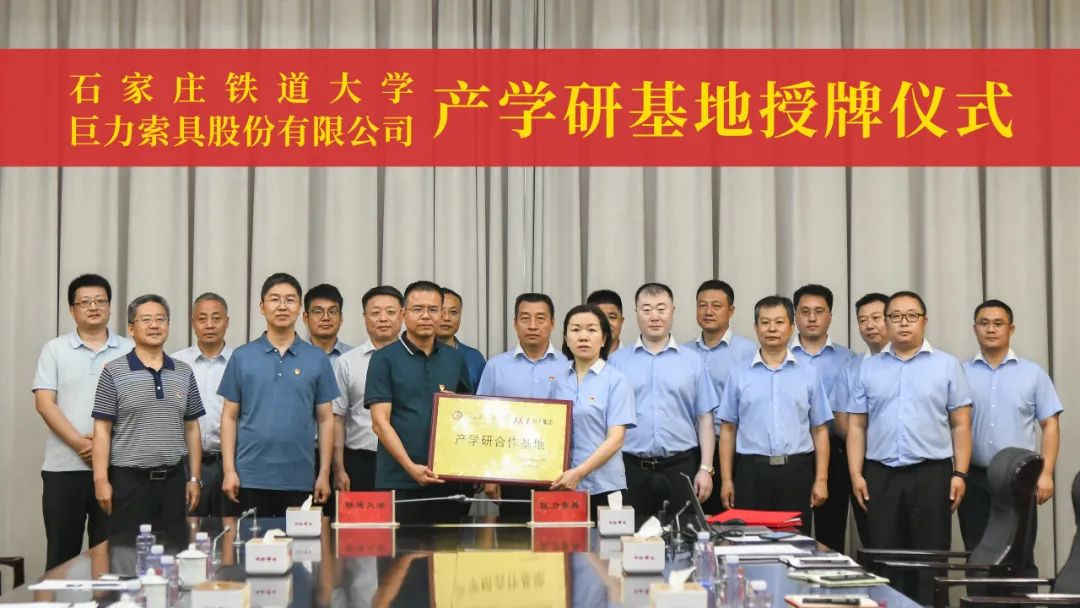 2023年7月4日,石家莊鐵道大學土木工程學院韓東海書記一行10人到訪巨力索具,雙方就產(chǎn)學研合作和黨建工作進行交流座談,舉行了戰(zhàn)略框架協(xié)議簽字儀式暨石家莊鐵道大學產(chǎn)學研基地授牌儀式。巨力索具常務(wù)副總裁李彥英、集團黨委副書記李天明、副總裁亢永剛接待并出席儀式。